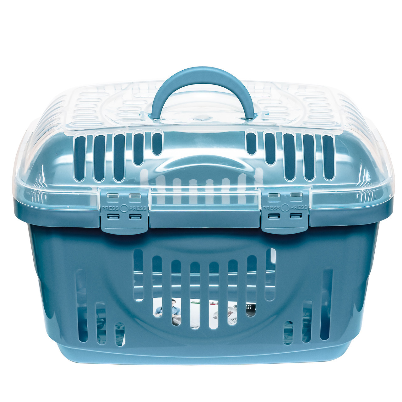 Контейнер-переноска з верхнім відкриттям виготовлена з міцного високоякісного нетоксичного пластика для транспортування домашніх тварин. Завдяки верхньому завантаженню ваш вихованець відчуватиме менше стресу. Бокові отвори забезпечують необхідну циркуляцію повітря. Переноска легко розбирається, чиститься і миється під проточною водою.