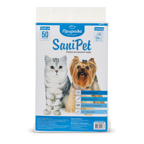 Гігієнічні пелюшки Природа SaniPet для собак, целюлоза, 45x60 см, 50 шт (*)
